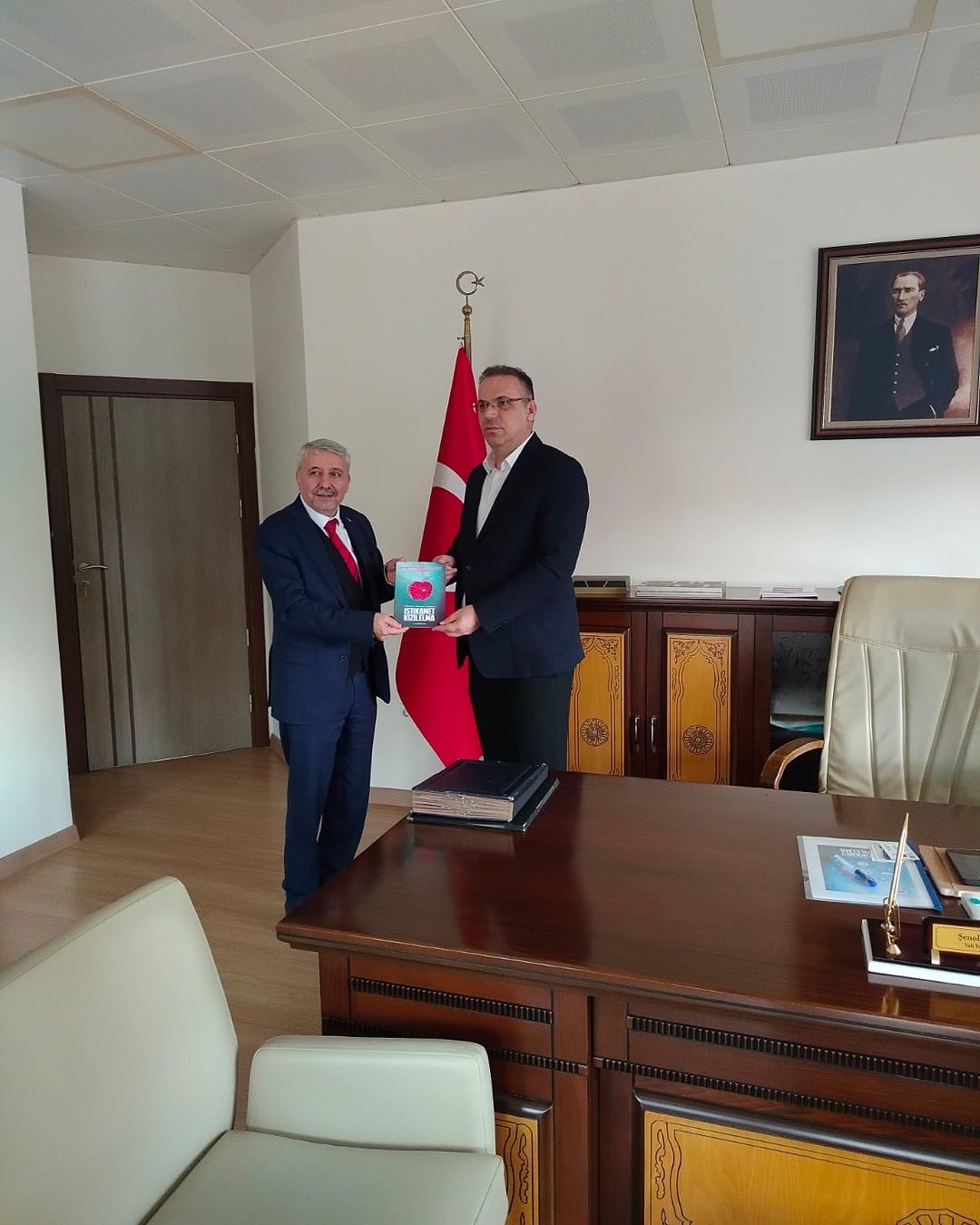 🤝 Ardından Kocaeli Vali Yardımcıları Sayın Şenol Kaya ve Mustafa Çalık beyleri ziyaret ederek istişarelerde bulundular. Bu ziyaret sırasında Sayın Genel Başkanımız Ahmet Ortatepe, Dünya Türk Ticaret Platformu ‘İstikamet Kızılelma’ Tanıtım Kataloğu’nu Sayın Şenol Kaya’ya takdim etti.